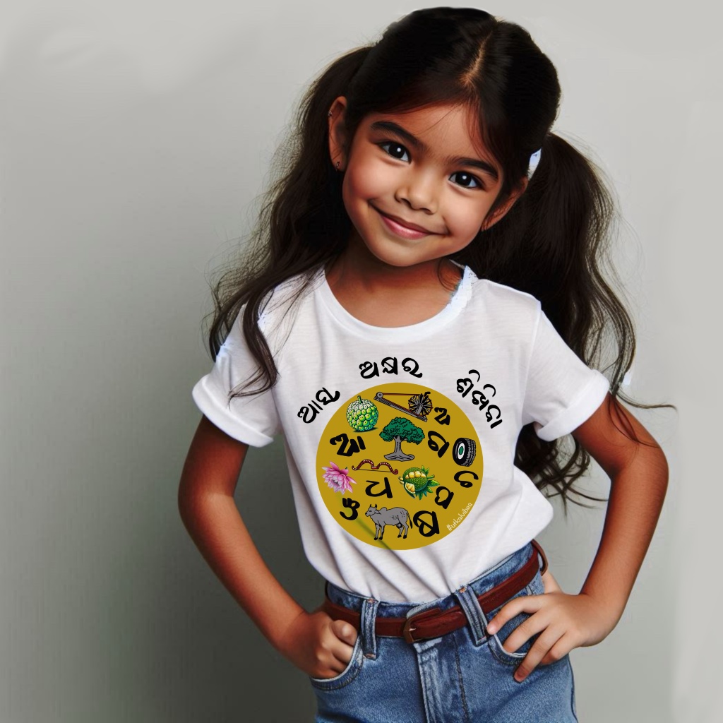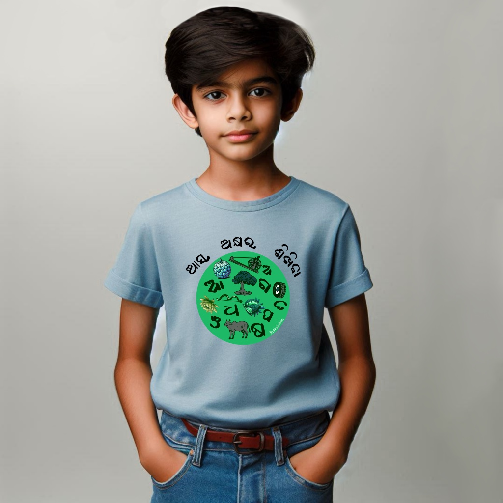 This nostalgic design pays homage to the beloved Odia primary school book “Barnabodha”, a cornerstone of childhood learning. Featuring the phrase “Aasa Akhyara Sikhiba” (Come, let’s learn the alphabets), it beautifully captures the innocence of early school days and celebrates the joy of discovering language and culture.