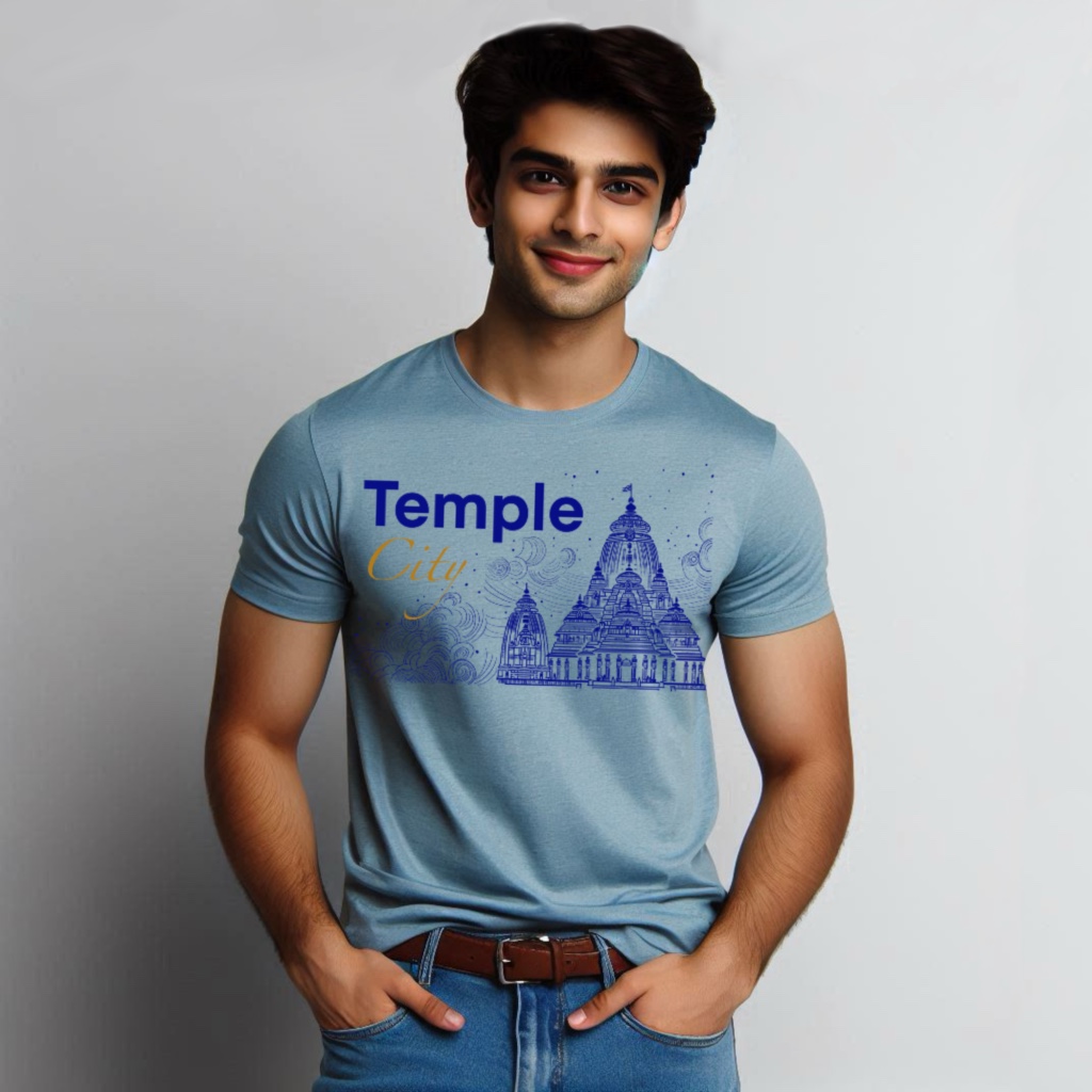 This design features a meticulously crafted sketch of the iconic Lingaraj Mandir, celebrated as the grandest temple in Bhubaneswar, the revered Temple City of India.