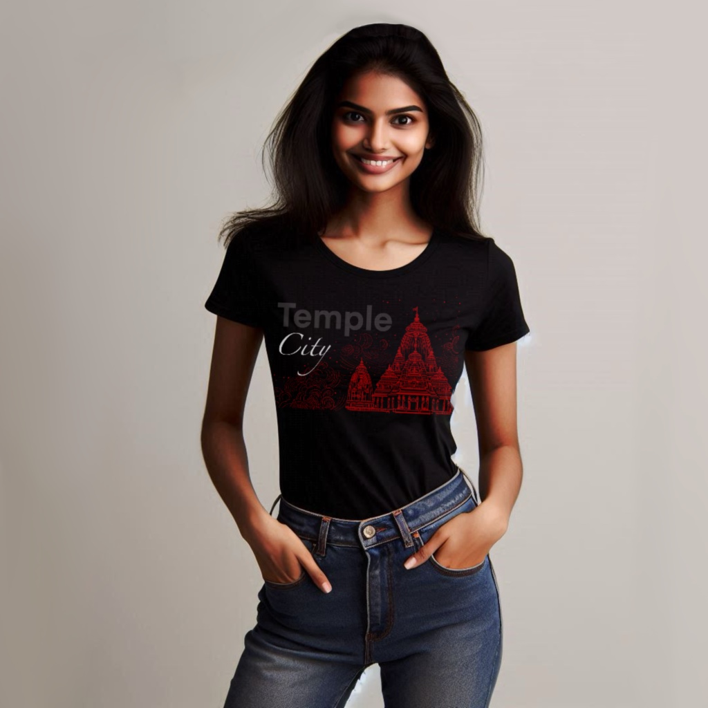 This design features a meticulously crafted sketch of the iconic Lingaraj Mandir, celebrated as the grandest temple in Bhubaneswar, the revered Temple City of India.